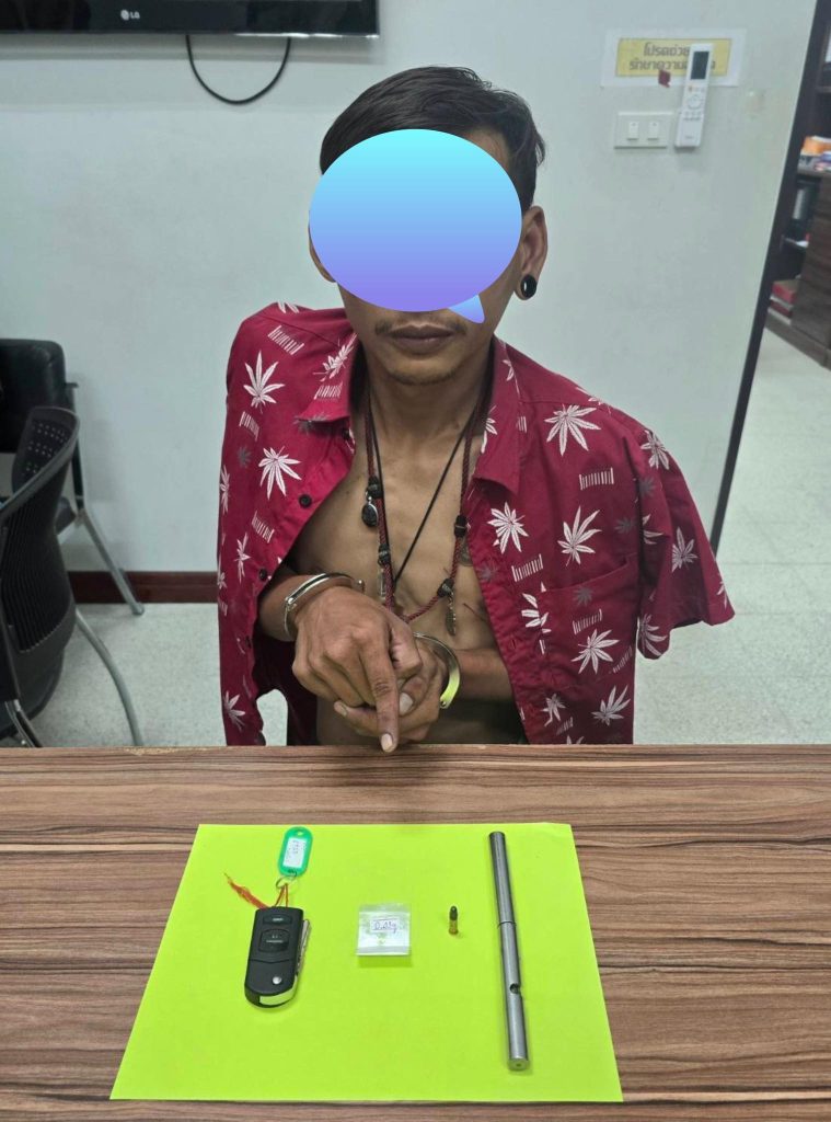 เมื่อเวลา 18.20 น.วันที่ 10 มี.ค.68 พ.ต.ท.พิชญุตม์ ศรีนาค สว.สส.สภ.กะรน จ.ภูเก็ต นำกำลังชุดสืบสวน สภ.กะรน เข้าจับกุมนายกิตติกร หรือ เต้ย จันทร์มาศ อายุ 28 ปี จ.นครศรีธรรมราช พร้อมของกลางปืนปากกา (ลำกล้องยาว 9 ซม.) ความยาวรวมด้าม 17.5 ซม.จำนวน 1 กระบอก กระสุนปืนขนาด .22 จำนวน 1 นัด (บรรจุอยู่ในลำกล้อง)และยาเสพติดให้โทษประเภทที่ 1 (เมทแอมเฟตามีน) บรรจุในถุงพลาสติกใสชนิดกดปิดดึงเปิดจำนวน 1 ถุง น้ำหนักเฉพาะยาประมาณ 0.43 กรัม โดยจับกุมได้ขณะที่นายกิตติกรขับรถเก๋งมาสด้า 2 สีขาว ทะเบียน กท 2955 ปราจีนบุรีติดไฟแดงอยู่บริเวณตลาดแม่สมจิตต์ ต.กะรน อ.เมือง จ.ภูเก็ต หลังก่อเหตุใช้ปืนกระบอกดังกล่าวออกมาข่มขู่กลุ่มรถแท็กซี่ที่บริเวณเทศบาลตำบลกะรน ต.กะรน อ.เมืองแล้วขับรถคันดังกล่าวหลบหนีไปทางโคกโตนด มุ่งหน้าไปยังถนนปฏัก จนกระทั่งชุดสืบสวน สภ.กะรนจับกุมตัวได้ในที่สุด จากการตรวจสอบประวัตินายกิตติกรพบเคยต้องโทษคดีเสพยาเสพติดให้โทษประเภท 1 ที่ สภ.ทุ่งสง จ.นครศรีธรรมราช เมื่อปี พ.ศ.2561 ควบคุมตัวส่งพนักงานสอบสวน สภ.กะรนในข้อหา 1.มีอาวุธปืนและเครื่องกระสุนปืนไว้ในครอบครองโดยไม่ได้รับอนุญาต 2.พกพาอาวุธปืนติดตัวไปในเมือง หมู่บ้าน หรือทางสาธารณะโดยไม่ได้รับใบอนุญาต 3.มียาเสพติดให้โทษประเภท 1 (เมทแอมเฟตามีน) ไว้ในครอบครองโดยไม่ได้รับอนุญาต เบื้องต้นนายกิตติกรให้การรับสารภาพในข้อกล่าวหาเกี่ยวกับอาวุธปืน แต่ให้การปฏิเสธในข้อหามียาเสพติดให้โทษไว้ในครอบครอง