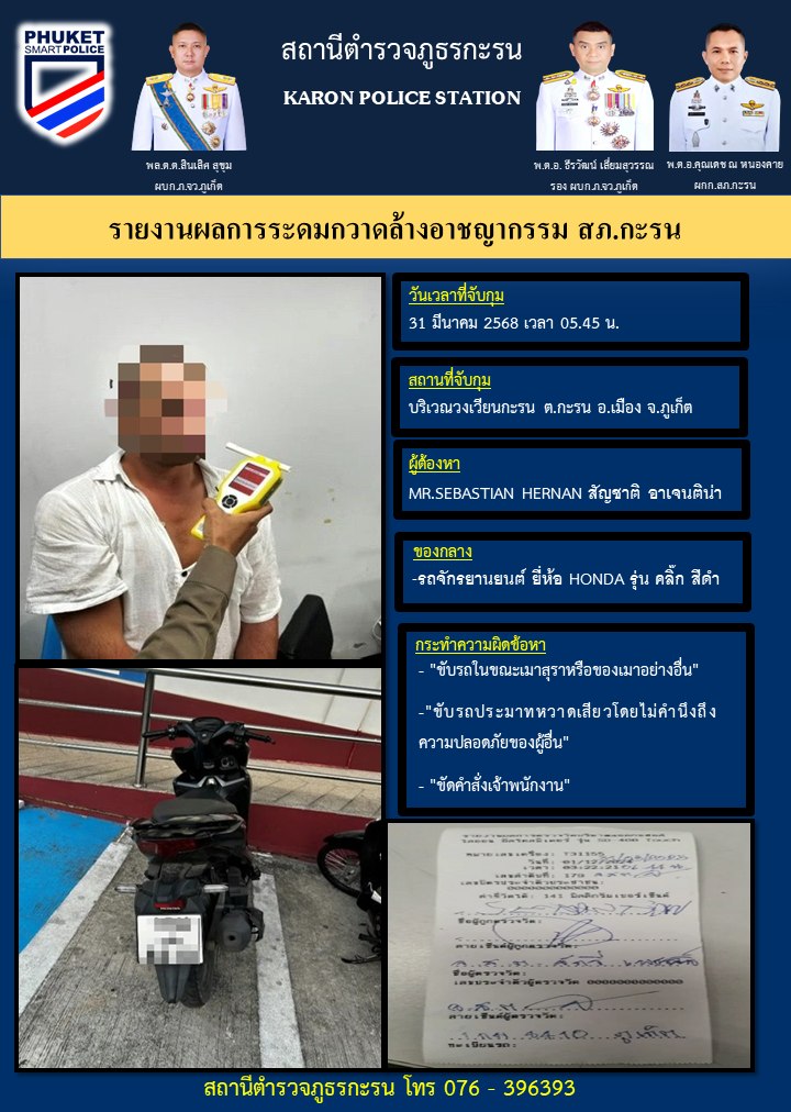 สถานีตำรวจภูธรกะรน รายงานผลการกวาดล้างอาชญากรรมในพื้นที่